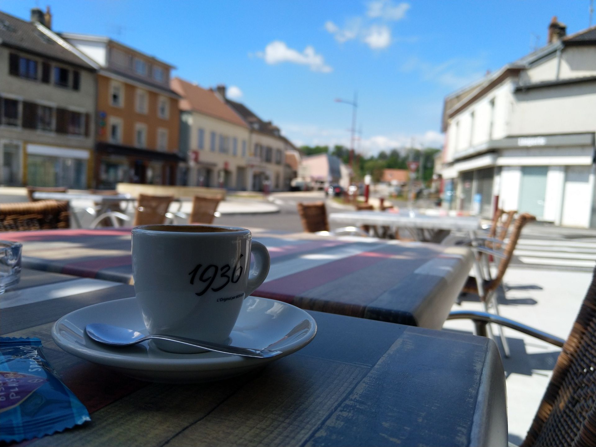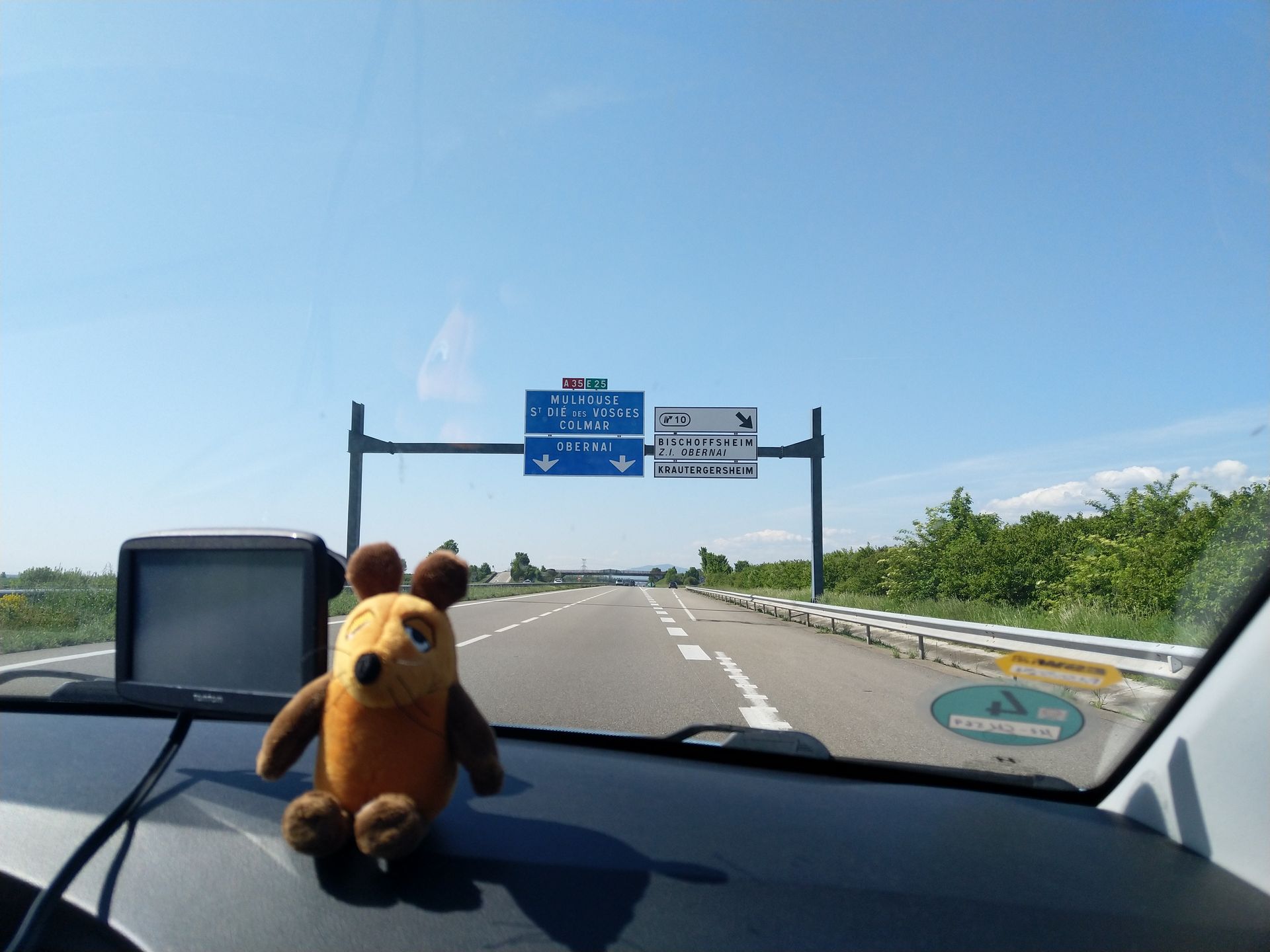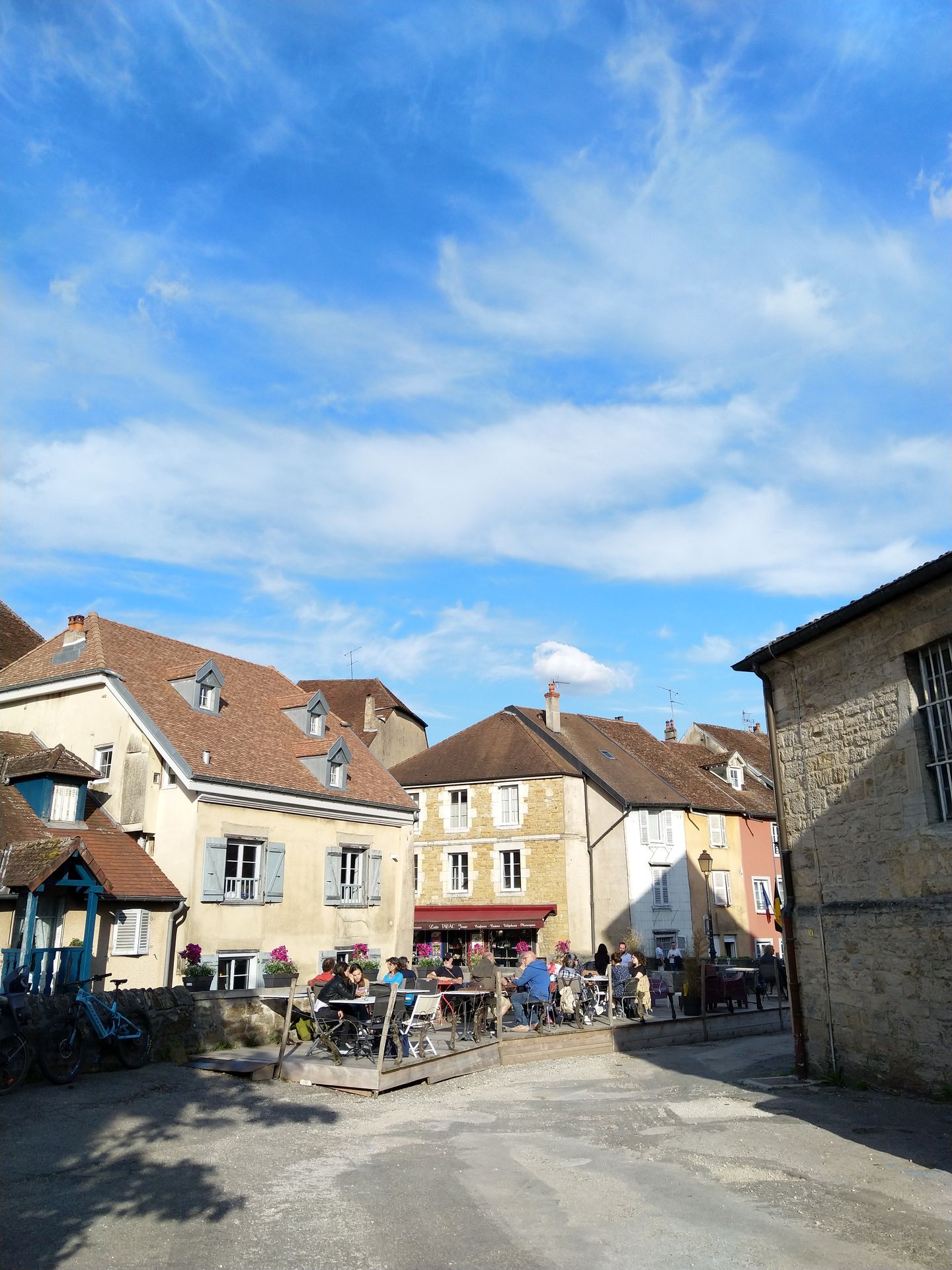 Obwohl ein bewölkter Tag vorrausgesagt wird, starten wir bei wolkenlosem, sonnigen Himmel. Wir fahren über Straßburg und Colmar. Hinter Mulhouse biegen wir Richtung Westen ab und es geht weiter Richtung Besançon. Davor verlassen wir aber die Autobahn und fahren auf der Landstrasse an der Doubs entlang. In L'Isle-sur-le-Doubs, es ist nach 13:00, gibt es endlich den ersten französischen Café. Leider haben die Franzosen das Café kochen verlernt. Viel zu dünn!