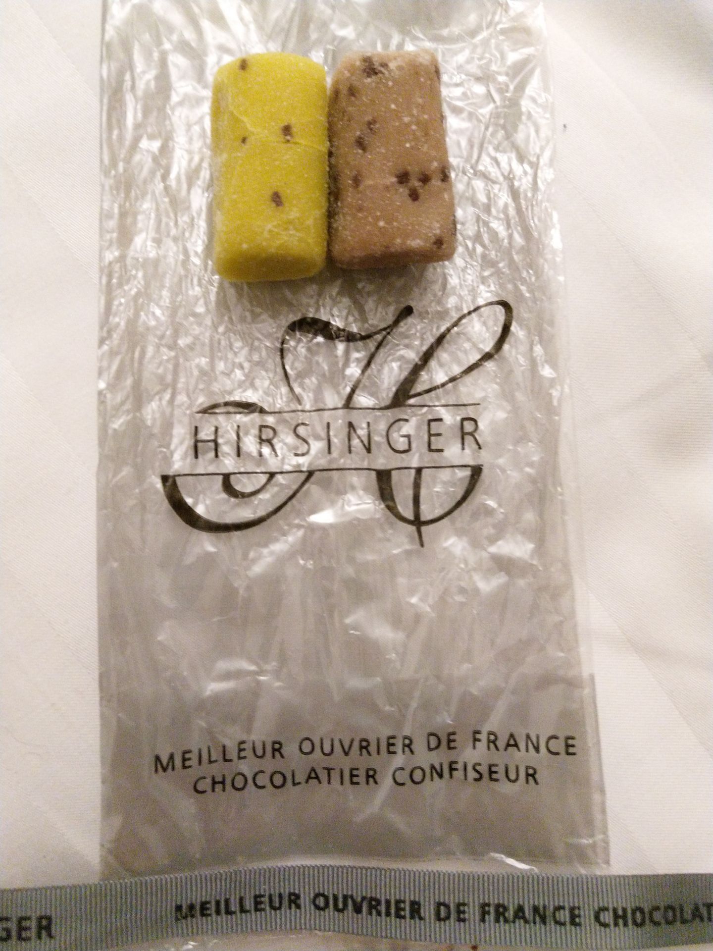 Ich bestelle einen "Vin de Paille" comme Aperitif - eine Spezialität von hier. Es ähnelt einem Banyuls oder leichten Portwein. Elke bestellt den Zander und ich ein Entrecôte. Beides ist sehr lecker und der Chardonnay anders als wir ihn kennen, aber nicht schlecht. Im Hotel gönnen wir uns nochmal einen "Bouchons à l'Absinthe" (siehe letztes Bild).