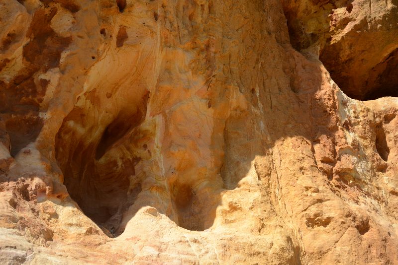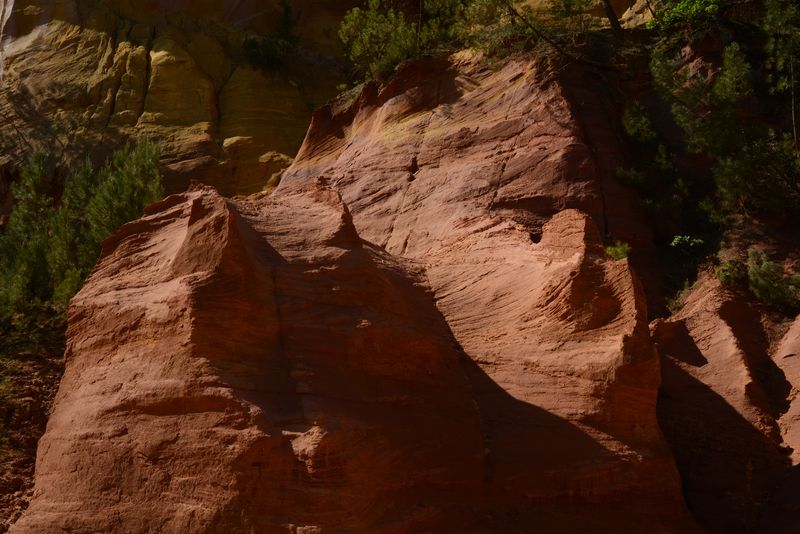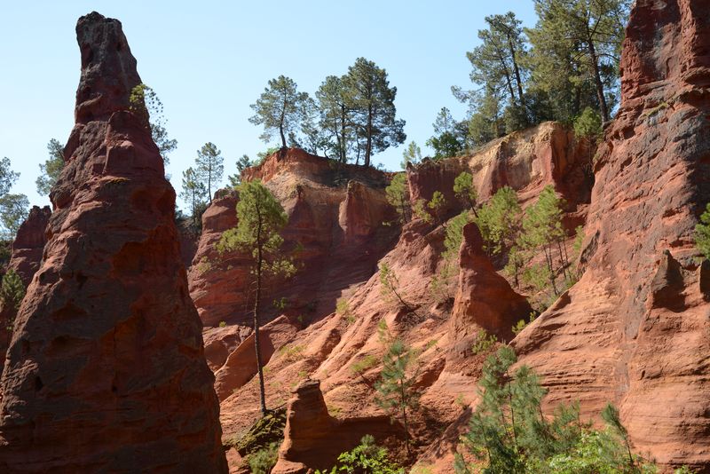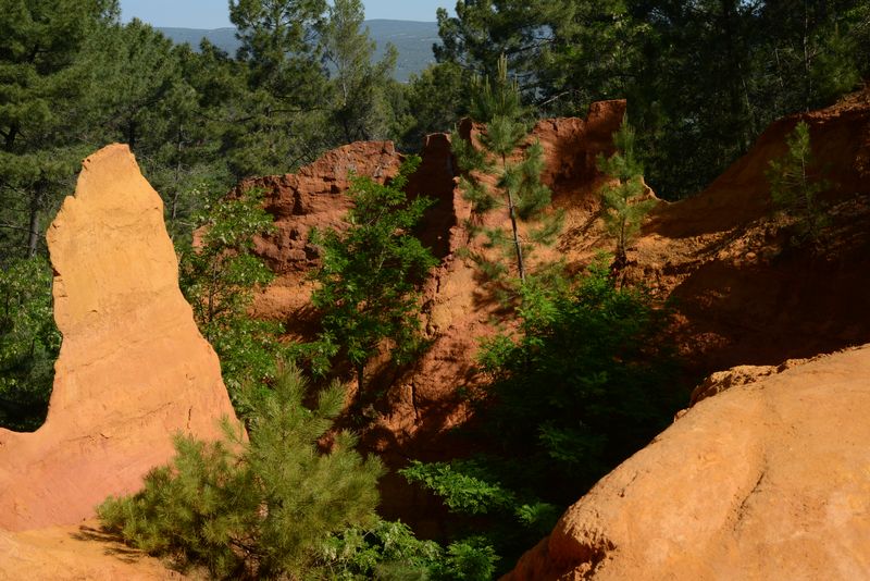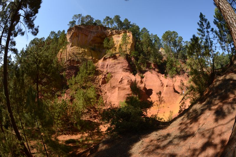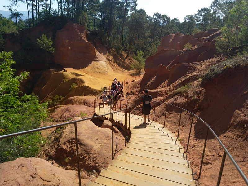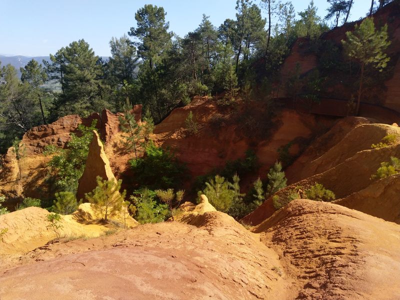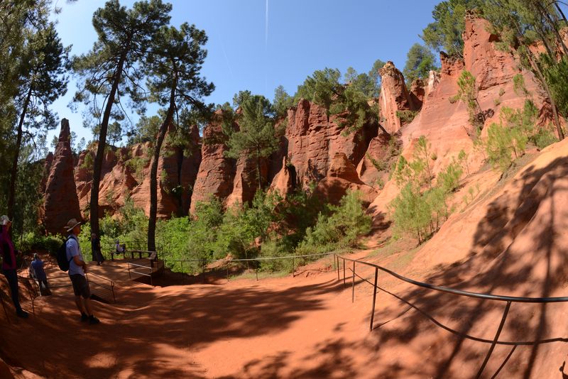 Früher konnte man einfach so zwischen den Ockerfelsen hindurchlaufen - ohne etwas zu bezahlen. Heute kostet der Parkplatz und der Eintritt etwas und man muss dort eine vorgegebene Strecke laufen. Ist wahrscheinlich besser so. Die Felsen leuchten im Sonnenlicht in verschiedenen Gelb- bis Rottönen. Das ist schon echt toll anzusehen.