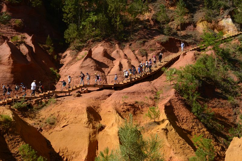 Über eine lange Treppe geht man in die Ockerfelsen runter