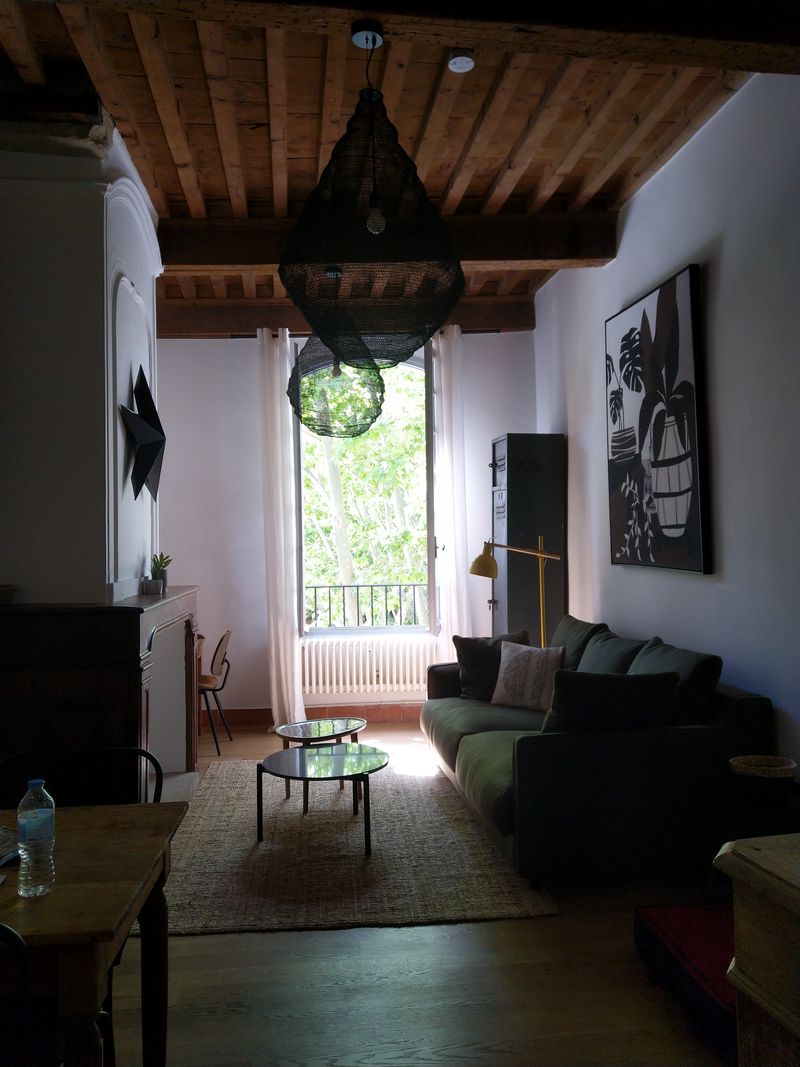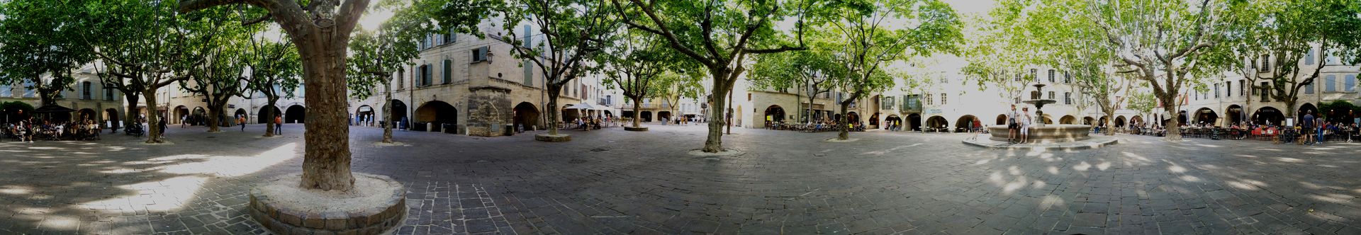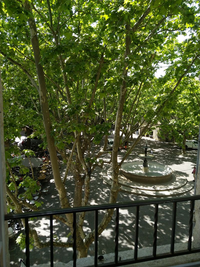 Unser Wohnzimmer in Uzès am Place aux Herbes mit Blick auf den selben