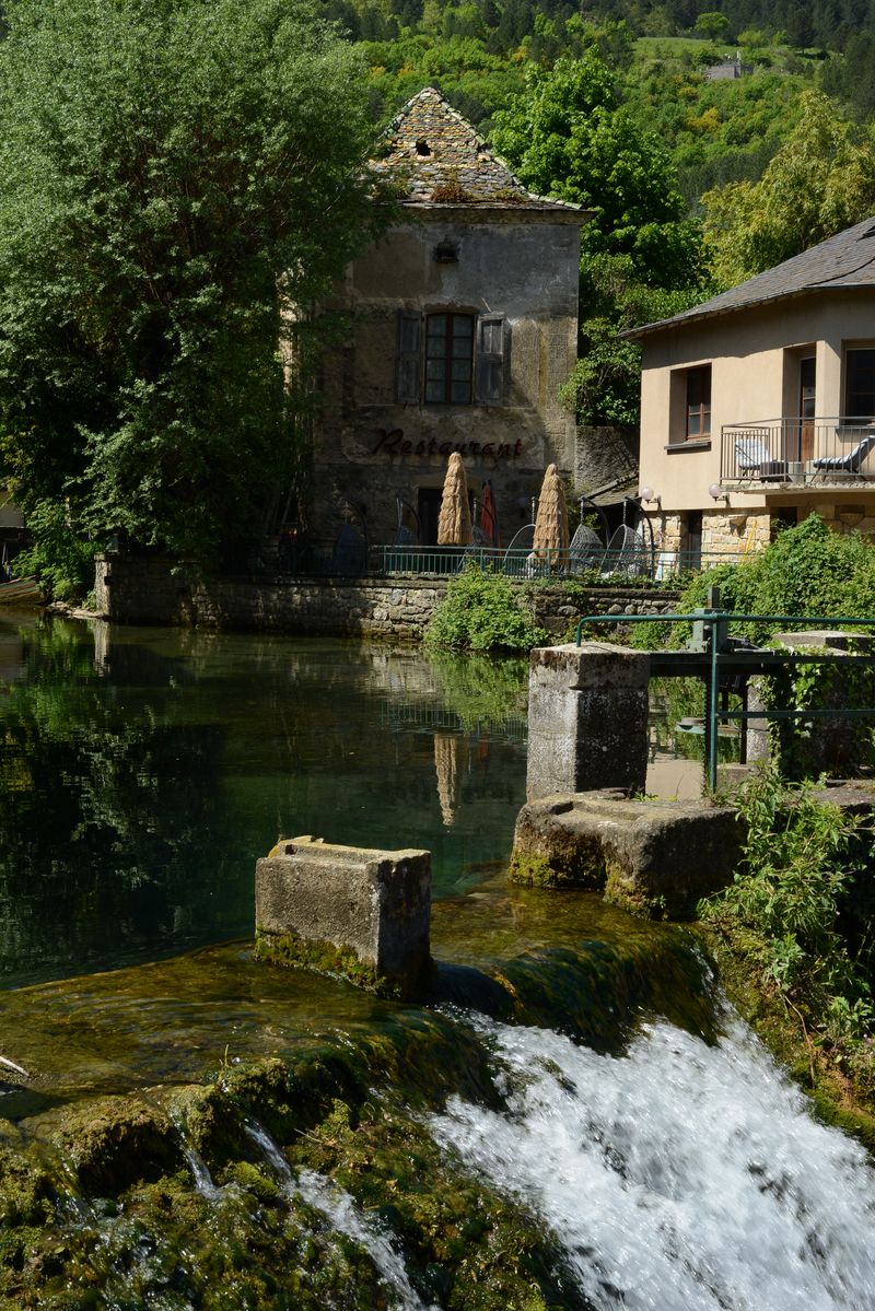 Wir fahren Richtung Westen auf der Landstrasse und schrauben uns irgendwann die Cevennen hoch. Vereinzelte Häuser, viel Ginster und traumhafte Ausblicke. In Florac, wo wir vor Jahrzehnten bereits waren machen wir unseren Café-Stopp.
