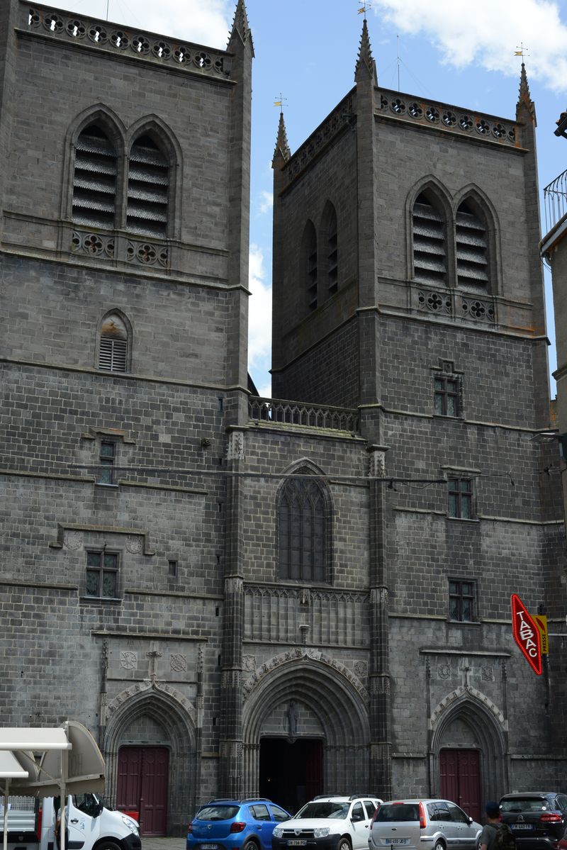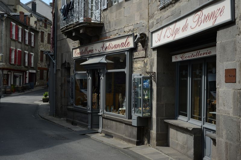 Nach wenigen Kilometern auf der Autobahn fahren wir wieder ab und müssen in St. Flour ein bißchen durch die Gassen schlendern, weil die hochgelegene Altstadt einfach zu toll aussieht. In Murat steigen wir die steilen Gassen hoch, aber es ist selbst hier auf über 1000m noch zu heiß. Die Häuser sind gänzlich anders als bisher in den anderen Regionen. Dunkle, sehr grobe Steine, eher hoch gebaut.