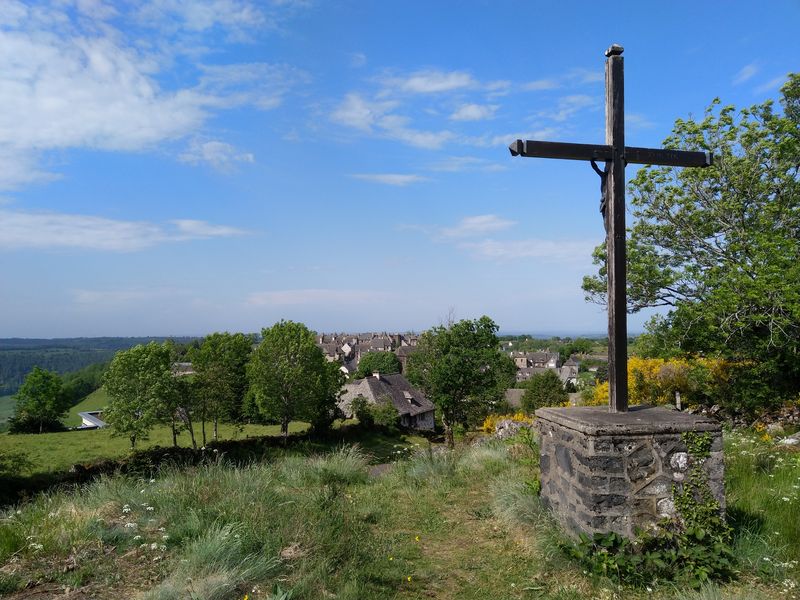 Wir fahren nach Salers, dafür müßen wir zuerst wieder oben auf den Pass von gestern. Von dort geht es eigentlich nicht weit, zeitlich aber schon, über engste Sträßchen hinunter nach Salers. Dort beginnen wir eine kurze Wanderung rund um den Ort, über von Mauern eingefasste Wege. Sehr idyllisch, geht es 6 einfache Kilometer nur wenig bergauf und bergab.