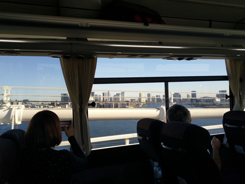 Wir steigen pünktlich um 8 in den Bus und fahren Richtung Fuji los. Keishi erzählt uns derweil, dass Tokio früher wegen der vielen Flüsse das Venedig Asiens war. Wegen der Olympiade 1964 brauchte man aber mehr Straßen und überbaute die Flüsse. Genauso schlängeln sie sich auch durch die Häuserschluchten und das in mehreren Ebenen. Irgendwann entschlossen sich die Tokioter die Dieselautos zu verbieten. Die Luft ist tatsächlich für eine Stadt dieser Grösse sehr gut. Wird wohl nicht nur am Diesel liegen. Insgesamt ist hier wenig Autoverkehr.