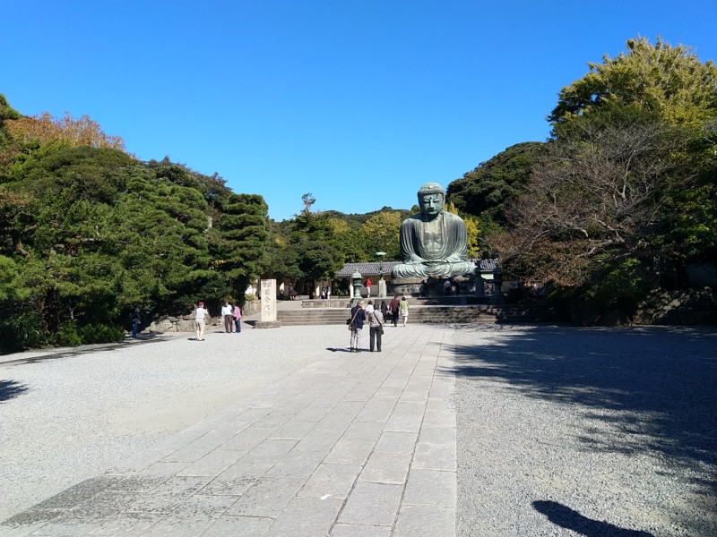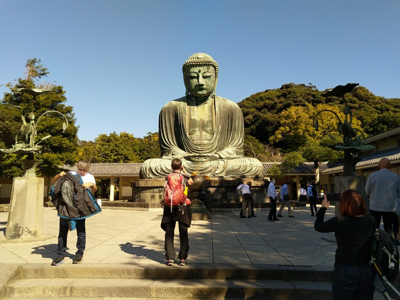 Wir fahren an der Küste entlang. In Kamakura ist unser erster Halt. Hier gibt es eine riesige Buddhastatue und einen wunderschönen Garten. Toll.