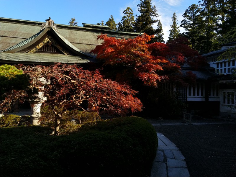 Da wir erst in einer Stunde abfahren können, der Bus kommt aus Osaka, laufen wir noch etwas in Koya-san umher. Leider ist die Sonne noch nicht über den Berg gekommen.