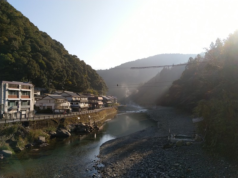Die Futonmatte war deutlich bequemer als die letzte und das Frühstück einfach nur super. Da hat wirklich alles gepasst hier. Das Wetter ist schon wieder Klasse! Bevor es losgeht laufen wir noch ein wenig umher und sehen einen großen Raubvogel auf der Brücke sitzen und etwas zerfleddern. Leider haben wir die großen Kameras nicht dabei, denn der Vogel lässt uns relativ nahe heran.