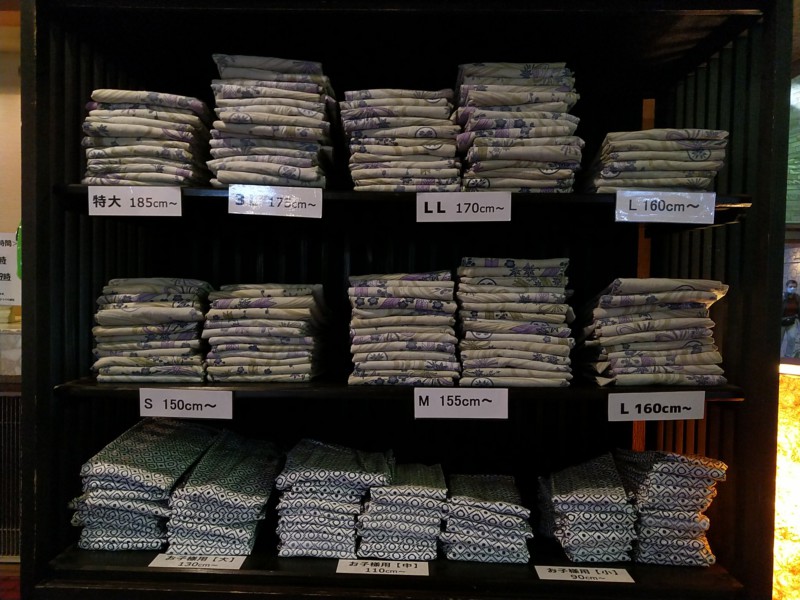Im Hotel: Kimonos nach Körpergröße sortiert