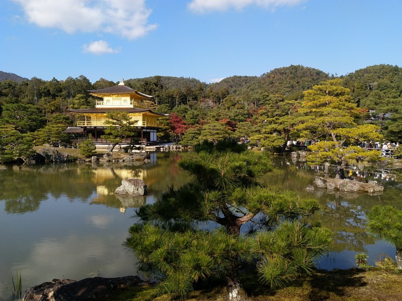 In Kyoto fahren wir gegen 13Uhr an die "Goldene Pagode" - den Kinkaku-ji Tempel. Hier brummt der Bär. Keishi sagt, dass durch die Pandemie alle Ausflüge ins Wasser gefallen wären und nun vieles nachgeholt wird. Es sind wirklich mehrere Schulklassen aller Altersstufen unterwegs. Einige Klassen schreiben eifrig mit was eine Führerin erzählt. Wird wohl später verwendet werden, daher ist die Motivation an einem so schönen Ort zu sein nicht besonders hoch.