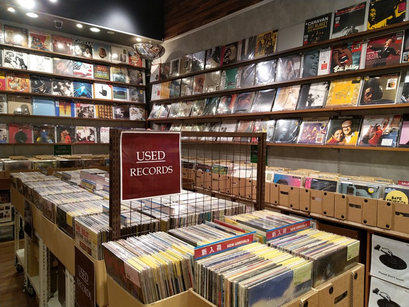 Dann geht es mäanderförmig um die Einkaufsstraße um ein Restaurant zu finden. Elke sieht Nudeln mit Avocado und Shrimps auf einer Karte. Das Restaurant ist italienisch angehaucht, aber mit einer asiatischem Note. Ich bestelle Schweinsnacken und Pommes, Elke das erwähnte Gericht und dazu gönnen wir uns noch Garnelen in Knobiöl. Auf dem Weg auf die Toilette gehe ich ins Untergeschoss und entdecke einen LP-Laden. Lauter schöne Platten - neu und gebraucht. Ebenso Zubehör zu Plattenspielern und passende T-Shirts. Einfach nur geil! Sorry für den Ausdruck.