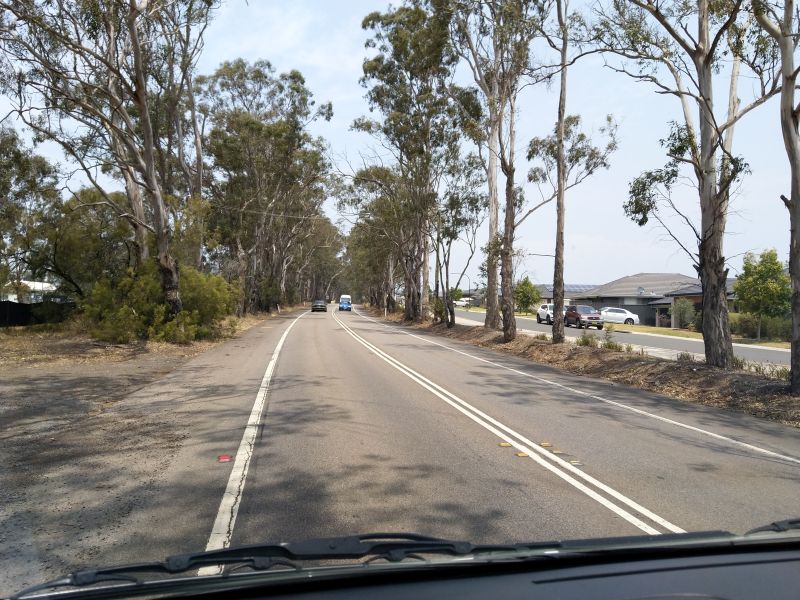 Also weiter Richtung Osten aus den Blue Mountains hinaus. Einen Cafe trinken wir in Glenbrooke, einem heimiligen kleinen Städtchen. Kurz darauf zweigen wir Richtung Südosten ab. Das Autofahren ist recht entspannt auf dem Motorway, von den vielen Baustellen am Anfang mal abgesehen. Alle fahren die vorgeschriebenen 80km und gut ist.