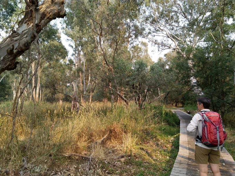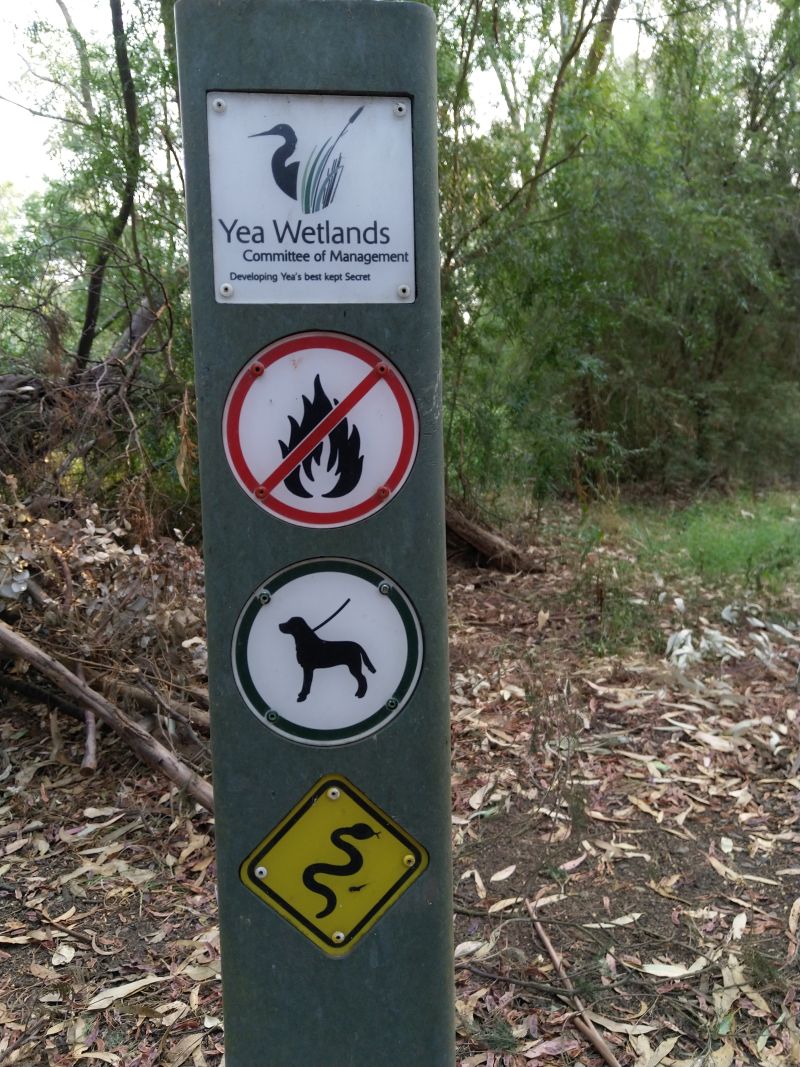 Yea Wetlands Walk" ausgesucht. Das ist ein kleiner Rundweg (1,8km plus ein extra Loop) durch feuchtes Waldgebiet und beginnt direkt hinter der Touriinfo, also nur wenige Schritte entfernt. Es ist erstaunlich wie schnell sich die Umgebung ändern kann. Wären die Motorengeräusche der Laster nicht, man würde glauben man wäre im tiefen Wald. Der Walk macht richtig Spass. Es gibt alte Bäume und viele bunte Vögel zu sehen. Ein Vogelbestimmungsbuch wäre sehr hilfreich, denn es gibt unendlich viele Arten - eine bunter und schöner als die Andere.
