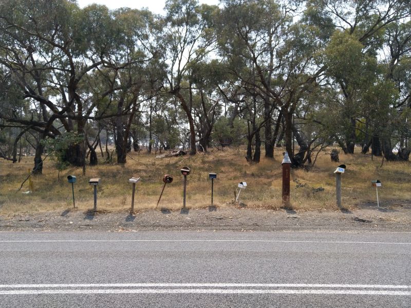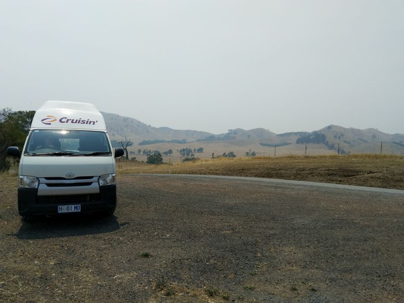 Gegen Mittag entscheiden wir uns für eine kleine Rundfahrt zur Erkundung der Gegend. Es ist zwar lange nicht so klar wie gestern, aber die Gegend ist trotz ihrer Trockenheit sehr schön. Wenn alle die Wiesen grün wären und der Himmel blau wäre es noch schöner. Leider sehen wir wieder Kängurus und Wombats (oÄ) im Strassengraben liegen. Es ist ein Elend.