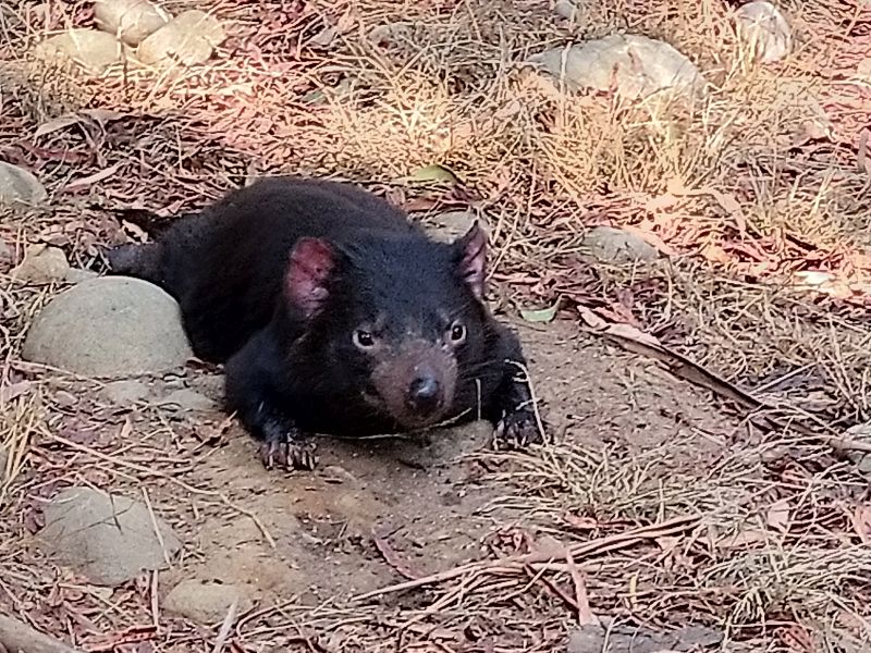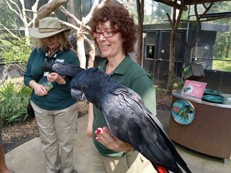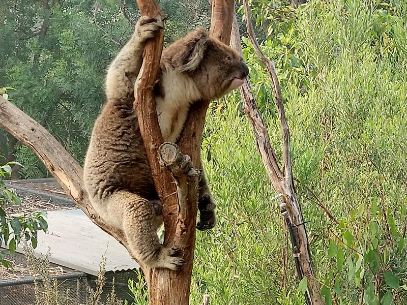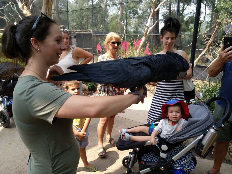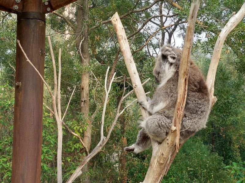 In Healesville besuchen wir das Sanctuary, was ein kleiner Zoo mit einheimischen Tieren ist inkl. Tierklinik. Endlich sehen wir lebende Kängurus, Wollabies, Wombats, Koalas, Tasmanische Teufel und vieles mehr. In einem Vogelgehege darf ich einen schwarzen Kakadu auf dem Arm halten - ein Riesendrum. Toll. Auch Warane, verschiedene nachtaktive Tiere und eine 8m lange Python gibt es. Das hat sich gelohnt herzukommen. Das ganze runden wir mit einem Kaffee und Kuchen an der Hauptstrasse ab.