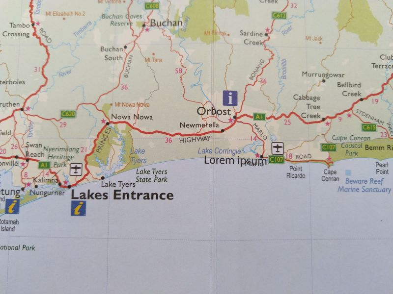 Wer schon immer mal wissen wollte wo Lorem ipsum liegt - südöstlich von Orbost :-)