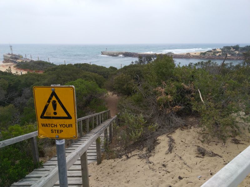 Morgens ist es recht frisch, es geht ein Wind und es ist durchgehend bewölkt. Mehr als 20° werden es heute nicht werden, und das im Hochsommer in Australien! Wir brechen auf um den Walk zum "Lakes Entrance" zu laufen. In