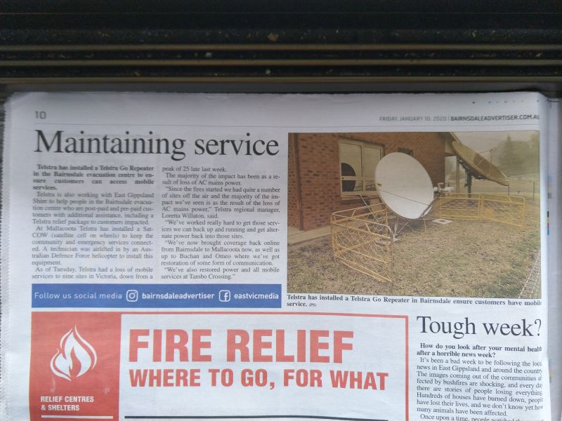 Dort wo der "Eingang zum See = Lakes Entrance" ist, sehen wir Seehunde und Kormorane. Das ist doch schon mal was. Nach 2 Stunden sind wir zurück und gönnen uns einen Café in den "Three Sisters". Die Bedienung erklärt uns den Unterschied zwischen einem FLAT WHITE und einem LATTE. Der Anteil Milch ist es nicht, das dachte Elke, sondern es ist der Anteil Schaum obendrauf. Wieder was gelernt - war der Tag nicht umsonst :-). In den Zeitungen am Tresen lesen wir die neuesten Nachrichten. Irgendwo in der Nähe von Bairnsdale, unweit von hier, sind Menschen noch immer ohne Telefon und Strom. Mehere Famillien halten über Funk Kontakt zueinander. In Australien darf man ohne Lizenz mit 5W in UHF funken und es gibt sogar Relais. Auf sehr vielen Autos sieht man Kurzwellenantennen. Wahrscheinlich CB im 11m-Band. Die Antennen sind zwar wesentlich zu kurz - aber immerhin. In einer Annonce der Regierung werden Reservisten einberufen um zu helfen. Viermal fliegen Armeehubschrauber über uns; einmal mit einem Transportnetz unter sich. Die Auswirkungen sind überall sichtbar. Die Restaurants sind geschlossen und die Ausflugsboote liegen fest.