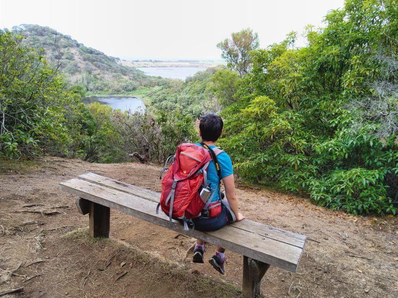 Elke sieht einen Koala auf einem der Bäume. Es hiess zwar man könne hier alle möglichen Tiere sehen, aber meist sind die einfach zu scheu und flüchten schon vorher ins Dickicht. Nach einer Stunde am Visitorcenter zurück hängen wir noch den Birdwatch-Track dran. Wir laufen auf einen Steeg der um ein Feuchtgebiet führt und plötzlich steht ein