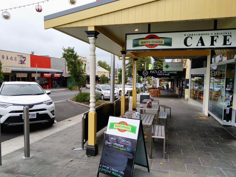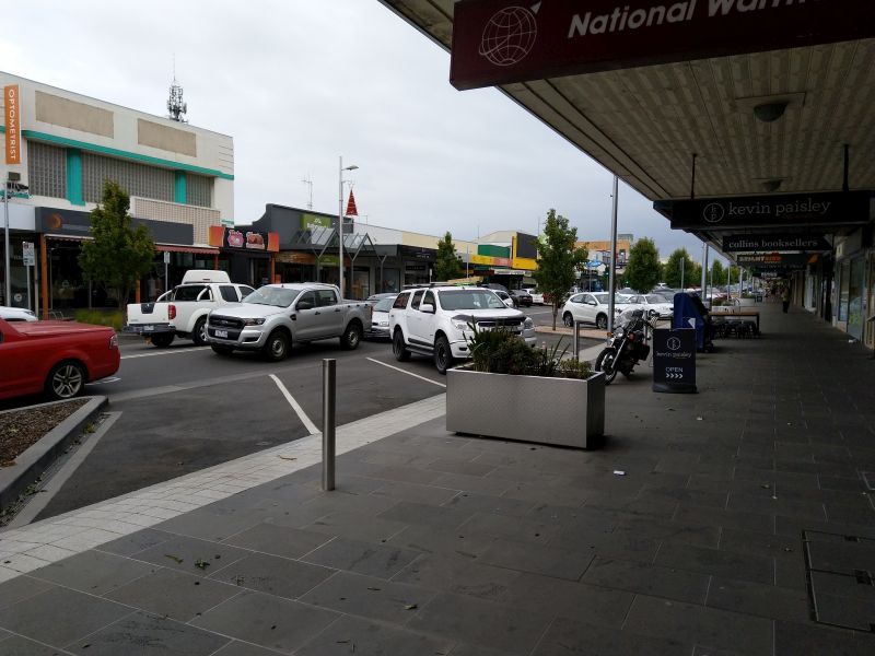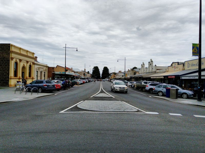 Der Wind hat etwas nachgelassen, dafür ist er jetzt deutlich kälter. Nun kommt er übers Wasser. Die Temperatur ist nun auf 17°C gefallen. Zusätzlich ziehen Wolken auf. Wir fahren die 22km nach Warrnambool zurück und schauen es uns an. Es gibt einen Innenstadtkern aus mehreren schachbrettartig verlaufenden Strassen mit vielen Geschäften. Es ist kein Traumwetter und es beginnt zu nieseln, aber es nichts los hier. Es ist die einzige Stadt weit und breit mit einem nennenswerten Angebot an Geschäften und es ist nix los! Das Restaurantabgebot ist in Ordnung, aber nichts was uns vom Hocker haut.