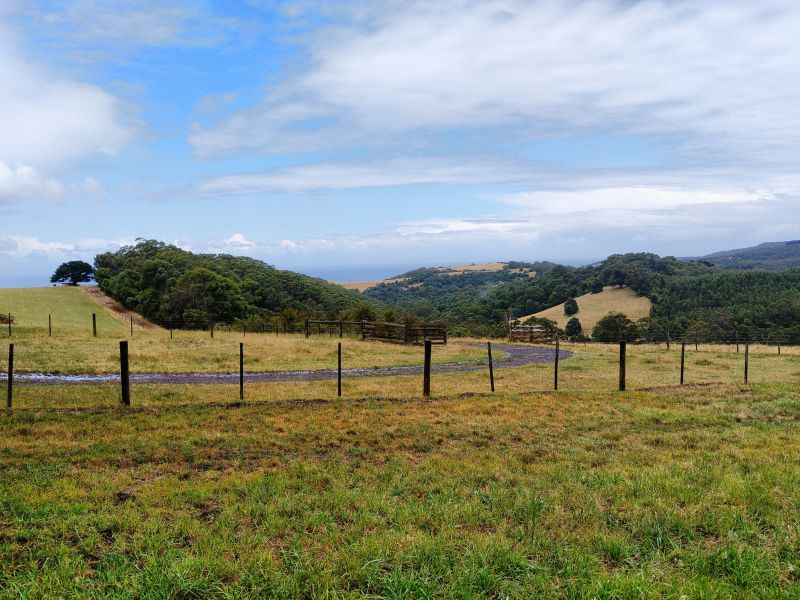 Eigentlich hätte Thomas jetzt gerne einen Kaffee, aber dieser Teil der Great Ocean Road geht durch sehr einsames Gebiet, sehr schönen Wald und hügeliges Farmland. Als wir dann endlich ein Café finden sind es (Achtung: kein Witz!!!) 11° - um 13 Uhr. In dem Café gibt es Strickwaren aller Art zu kaufen, Wollsocken, Handschuhe, Pullover - ich bin kurz versucht.