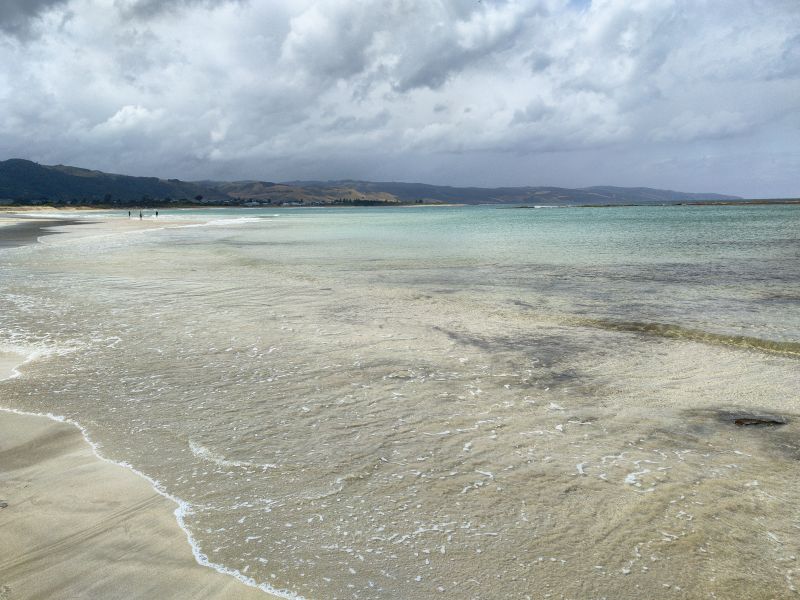In Apollo Bay ist es dann vorbei mit der Einsamkeit. Restaurants, Geschäfte (die gerade alle dicke Sweater verkaufen) und eine Art Jahrmarkt an der Uferstraße. Unser Campingplatz, der sehr teuer ist, liegt wenige Km vor dem Ort direkt am schönen Strand. Zu dem machen wir dann bei (wieder Achtung) sehr kaltem Wind aber hie und da Sonne (!) einen kleinen Spaziergang. Ein Koala ist gerade die Attraktion hier auf dem Platz, er sitzt ziemlich niedrig in einem Baum und futtert genüßlich vor sich hin. Die sind einfach sehr süß!