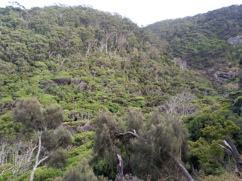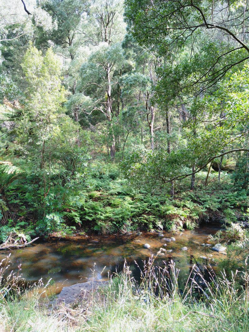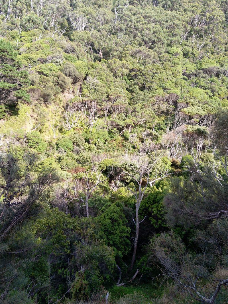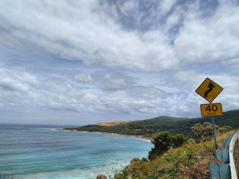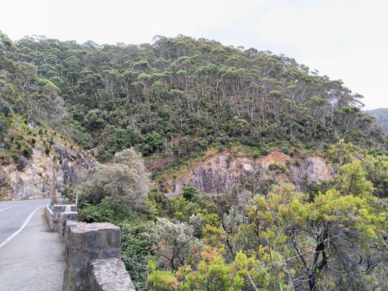 Great Ocean Road ist ja von Westen kommend ihrem Namen noch nicht so gerecht geworden. Ab Apollo Bay ändert sich das. Von nun an verläuft die Strasse immer am Meer entlang. Noch nicht weit gekommen sehen wir ein Schild zum "Carisbrook Falls Lookout". Die Einfahrt zum Parkplatz hat man vorsichtshalber nicht markiert. Nicht dass einer tatsächlich da hält :-)! Für alles und jeden Blödsinn gibt es Schilder, aber Sehenswürdigkeiten muss man manchmal echt suchen.