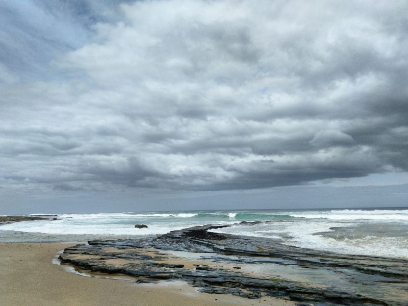 Apollo Bay zurück. Im örtlichen Foodworks gehen wir für heute abend einkaufen. Das Wetter sieht stabil aus. Die Sonne wärmt gerade und so machen wir einen langen Strandspaziergang. Das Meer reizt mich schon sehr und ich war erst einmal drin. Schnell die Badehose an und rein. Brrrrr. Es ist saukalt, aber wunderbar. Die Wellen sind nicht besonders hoch in der Ecke der Bucht und so kann ich endlich etwas schwimmen. Klasse.
