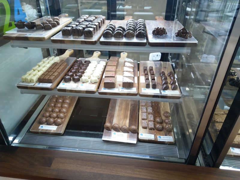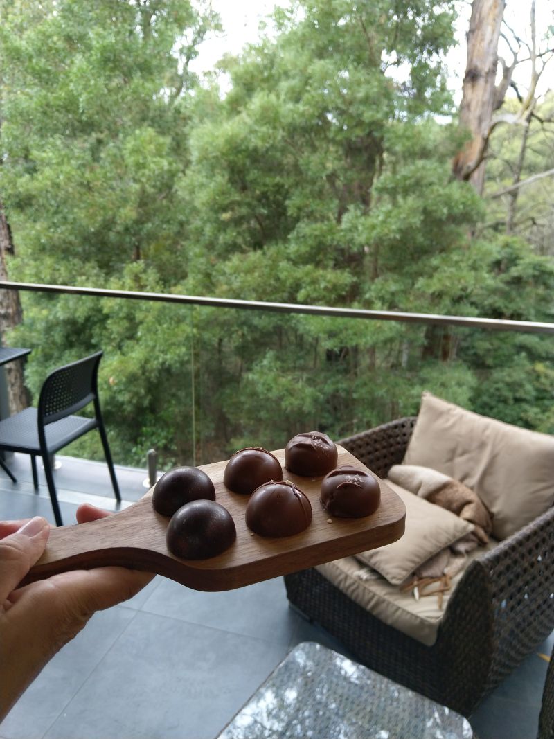 Chocolaterie. Dort gönnen wir uns 6 handgefertigte Pralinen die wir auf der großen Terrasse mit Blick in den Wald geniessen. Daraufhin treten wir die Heimreise an.