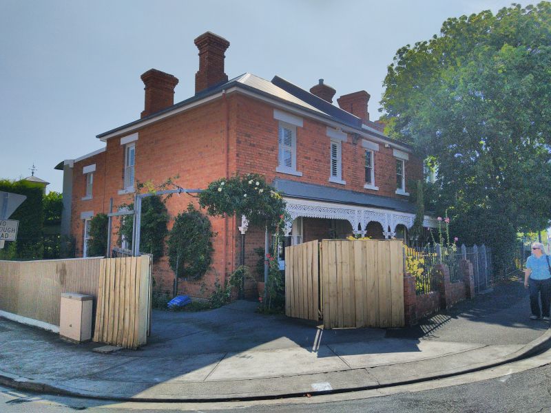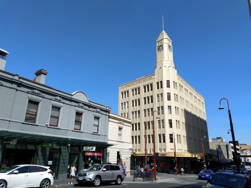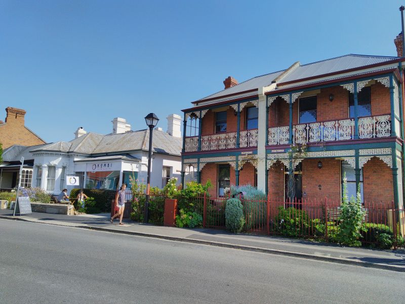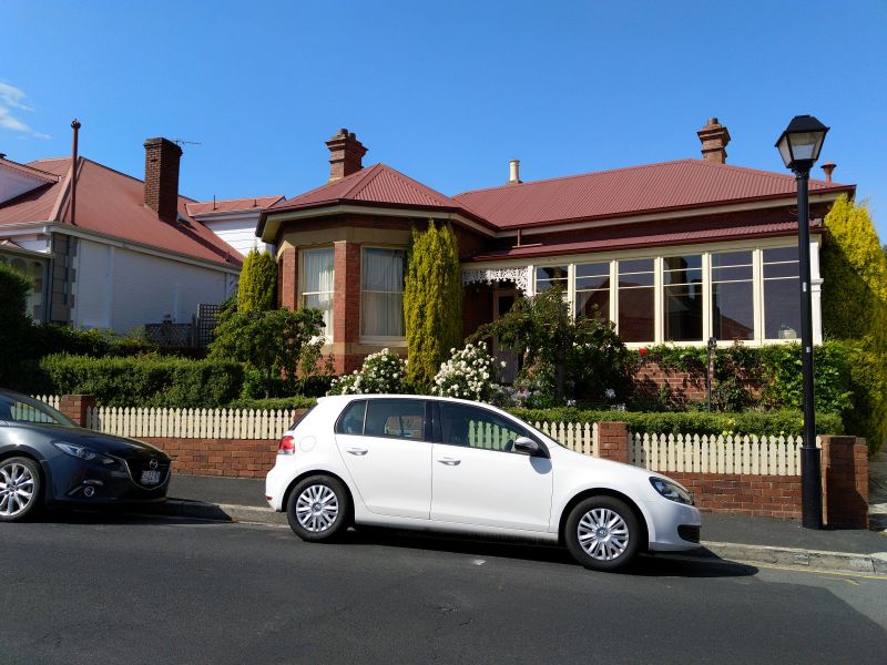 Danach geht es nach Hobart. Wir sehen uns ganz gemütlich den Salamanca Place mit seinen vielen Geschäften an um dann den Battery Point zu erklimmen. Das ist ein alter Stadtteil mit wunderschönen Häusern, teils mit Blick aufs Meer. So könnte man wohnen. Weniger schön, aber auch interessant ist dann die Innenstadt. Hier faszinieren mich hauptsächlich die vielen noch gut erhaltenen Art Déco Häuser. In einem kleinen Café gibt es (nein - keinen Espresso) einen Latte, der ist gut. Dazu gibt es für mich 2 poached Eggs auf Toast und Elke nimmt einen Muffin mit verschiedenen Früchten und clotted Cream. Weil der Caféspiegel noch zu niedrig ist gibt es einen zweiten Latte.