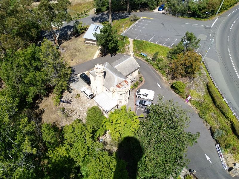 Shot Tower. Von oben hat man einen schönen Blick auf das Meer. Weil wir die Stufen richtig gezählt haben, es waren 318!!!, bekommen wir einen Aufkleber "I counted the right number of Steps!" geschenkt.