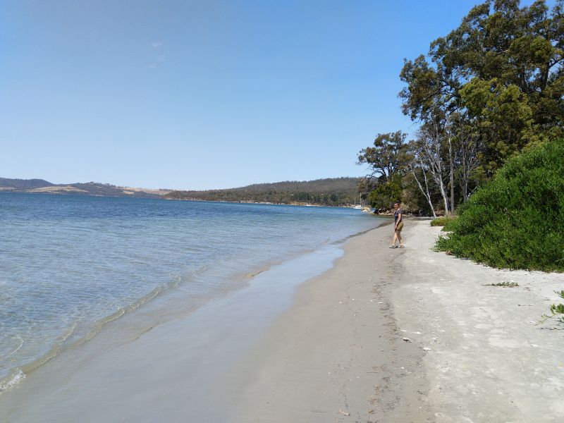 Weiter geht es dann nach Snug. Snug liegt an der North West Bay. Direkt am Meer liegt unser Campingplatz. Mittlerweile sind es 34°. Durch den sehr warmen Wind sind es gefühlt noch mehr. Einen Schattenplatz gibt es leider nicht, also muss der Camper mal wieder für Schatten sorgen.