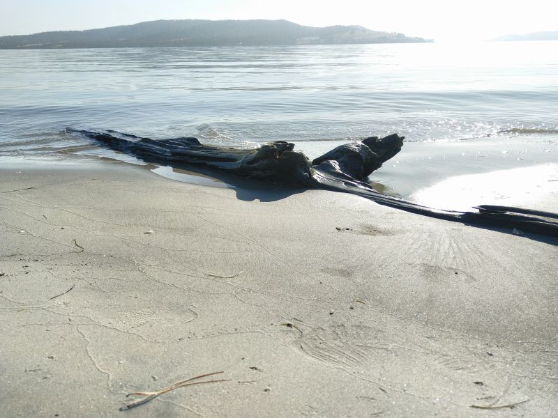 Wir sind heute genug durch die Hitze marschiert und wollen nur noch ins Wasser. Bei uns am Campingplatz ist das am praktischsten, denn die Dusche danach ist nicht weit. Das Wasser ist heute lange nicht so kalt wie gestern, aber der vom Meer kommende Wind türmt (10cm) hohe Wellen auf. Für Elke gerade noch akzeptabel.