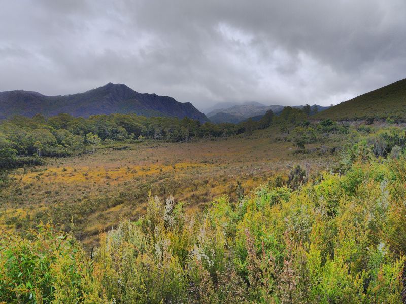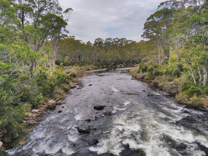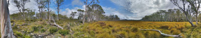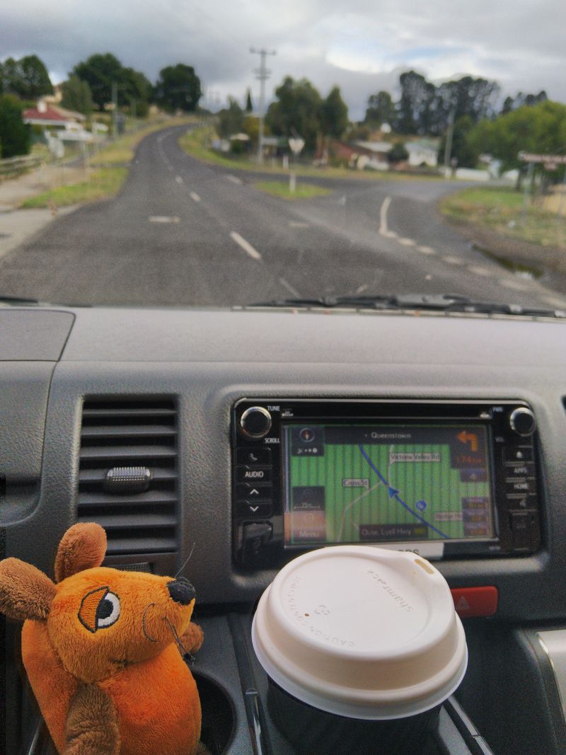 Wecker um 7, denn wir müssen heute über 320km fahren. Das hört sich nach wenig an, aber wir werden dafür 8 Stunden brauchen. Wir starten bei Wolken und 23° am Morgen. Bis kurz hinter Hobart ist die Strasse fast durchgänig 2-Spurig und schnell. Danach wird der Hyway 1-Spurig und windet sich bald den Berg hinauf. Die Landschaft ändert sich heute mehrfach. Zuerst wird es waldiger mit wunderschönen Eukalyptusbäumen. Meist stehen sie einzeln mit heller Rinde und lichtem Farn darunter. Bis Ouse gibt es noch häufig Farmen mit Kühen oder Schafen. Dort tanken wir. Es gibt nur wenige Möglichkeiten Sprit zu bekommen und man muss schon schauen nicht auf dem Trockenen zu sitzen. Ich gönne mir noch einen Café. Die Dame hinter dem Tresen sagt mir es gäbe aber nur einen Nescafé. Nett wie ich bin nehme ich selbst den - mit Milch. Ehrlich gesagt geht der sogar :-).