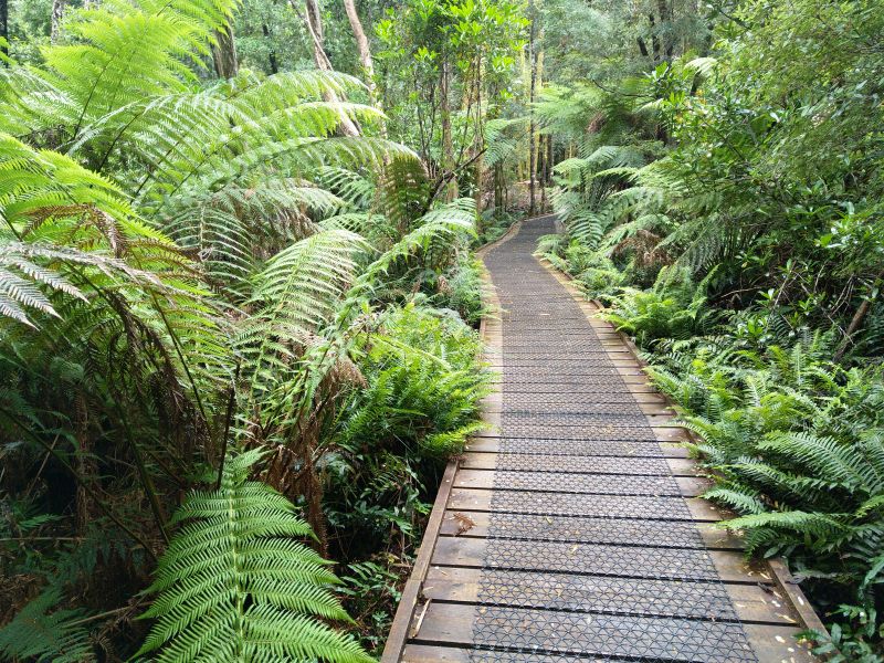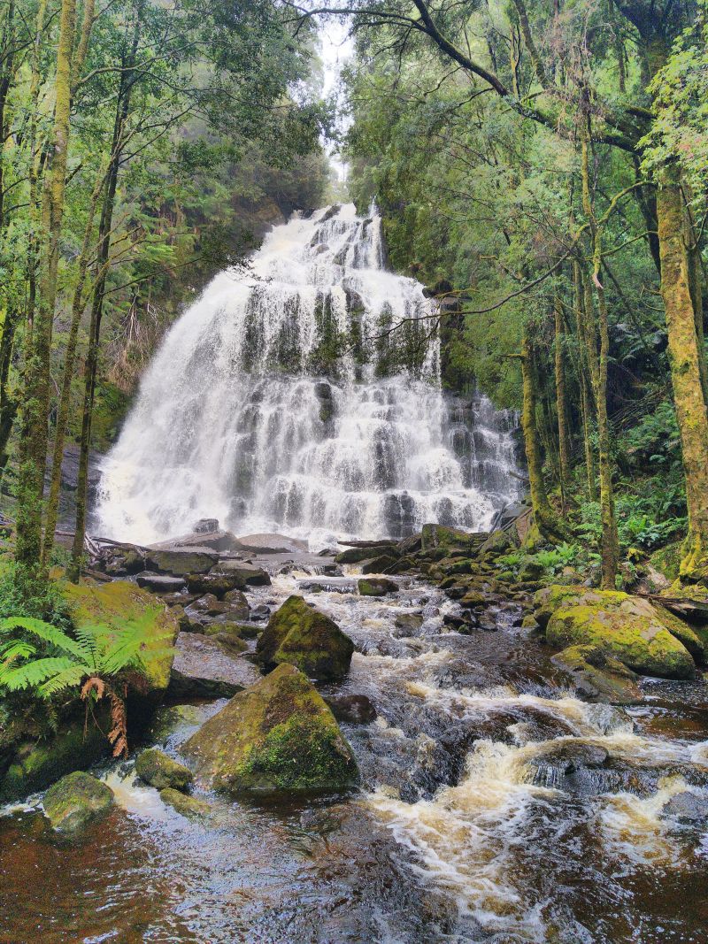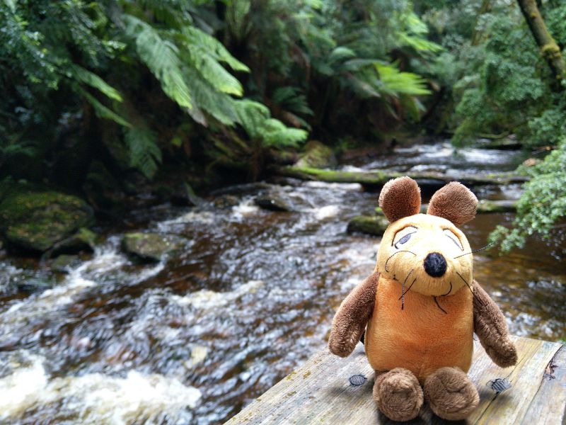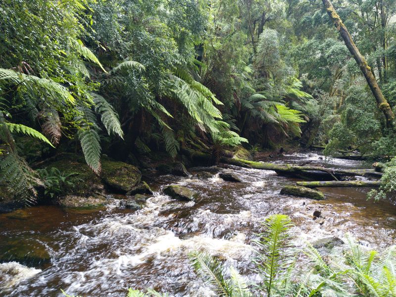 Der Abschnitt der dann folgt könnte nicht schöner sein. Regenwald mit tollen Bäumen und Baumfarnen. An den Nelson Falls laufen wir ein Stück und schauen uns den Wasserfall an. Es ist traumhaft. Farne an einem Flüßchen - ich bin hin und weg. So habe ich mir Tasmanien vorgestellt.