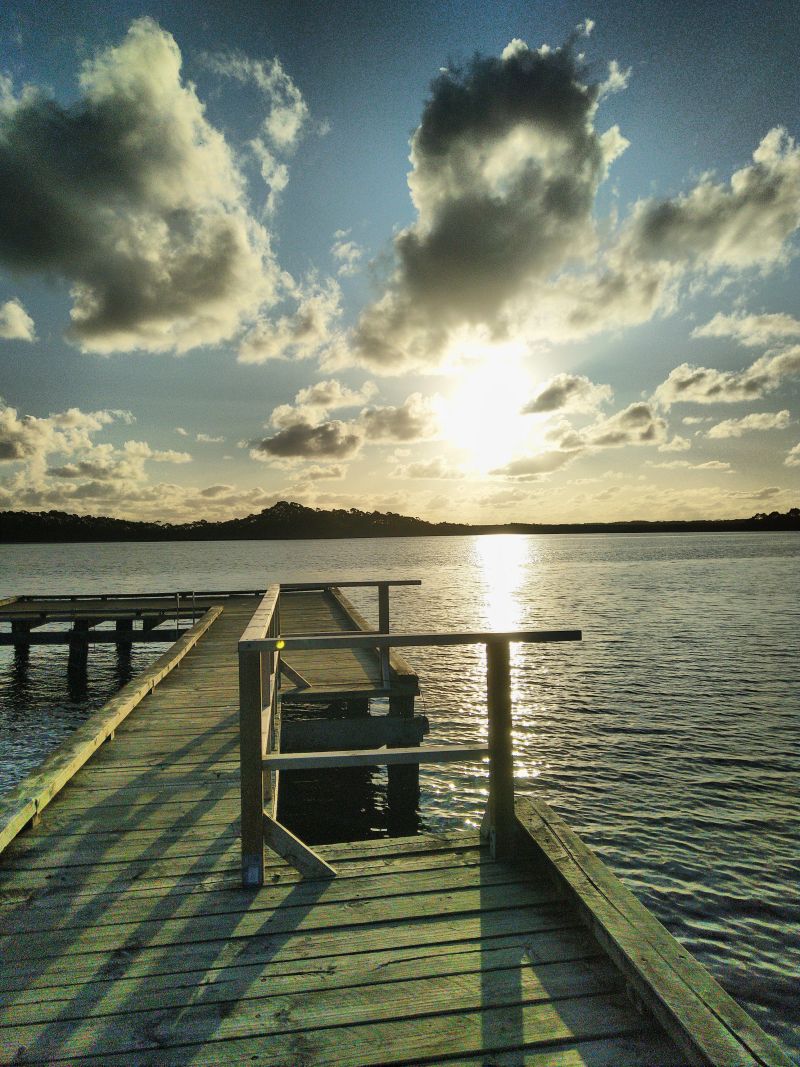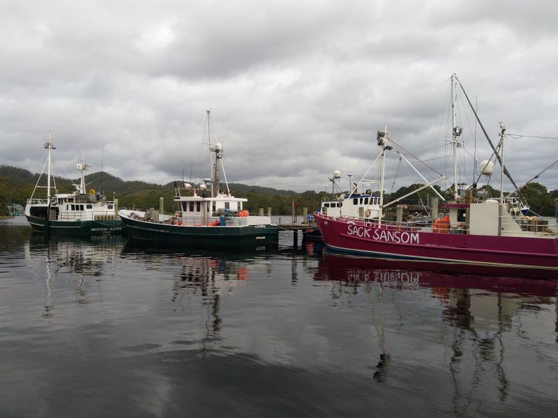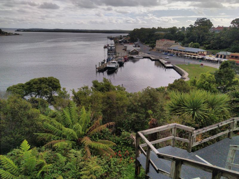 Gegen 6 haben wir uns für das Bushman entschieden und bekommen nur noch einen 8er-Tisch; alle anderen sind reserviert. Das ist uns aber egal. Wir bestellen beide Pasta und einen Sauvignon-Blanc. Am anderen Ende des Tisches kommen 2 Aussies dazu, danach 2 Mainlander und später noch 2 Briten aus Kent. Der Besitzer des Restaurants ist Grieche aus Mykonos und wir trumpfen mit unserem Griechisch und er mit seinem Deutsch. Am besten verstehen wir die Engländer. Das macht echt Spaß heute abend. Zusätzlich sind die Gnocchi, und da kenn ich mich aus, echt gut. Als wir aus dem Restaurant kommen hat es aufgeklart und die Lichtstimmung im Hafen von Strahan ist wunderschön.