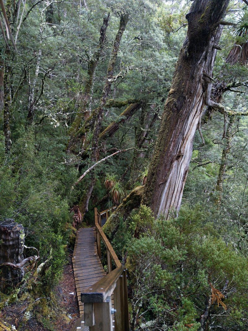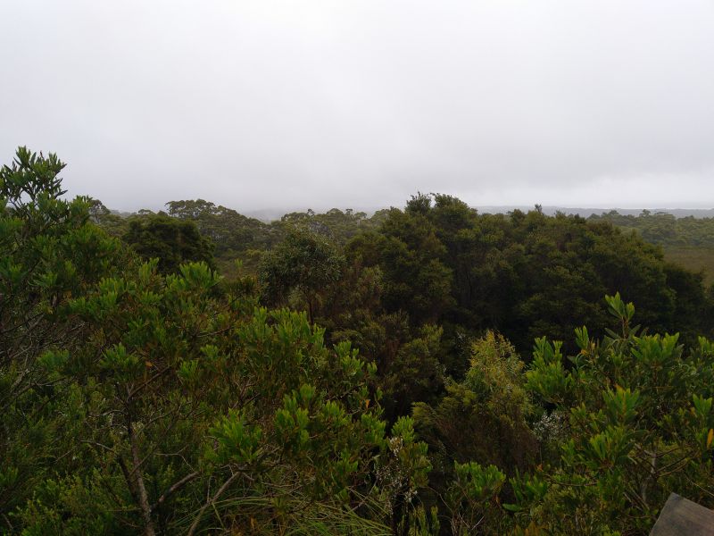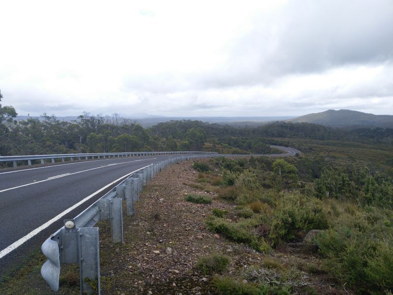 Wir sind noch nicht richtig gestartet fängt es an zu regnen. Die Vorhersage ist mal wieder richtig. Blöd ist nur, dass wir durch richtig schönen Wald fahren und nur wenig davon sehen. An der Henty Dune könnte man auf eine 30-40m hohe Düne laufen - fällt ins Wasser. Ab und an geht eine Wanderung von der Strasse ab - fällt ins Wasser. Das ist echt schade. In Rosebury tanken wir und in Ermangelung eines Cafés fahren wir nach Tullah weiter. Hier sind wenigstens 2 Cafés verzeichnet. Es ist halt Sonntag und nicht alles offen in dieser recht verlassenen Gegend. Gäbe es keinen Bergbau würde es hier wahrscheinlich gar nichts geben.