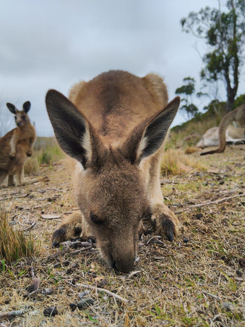 Auf einer großen Wiese sind unheimlich viel Kängurus jeglicher Größe und warten auf Touris mit Futter. Sie kommen angehoppelt und betteln teilweise. Eigentlich nicht so unser Ding, aber beim füttern kann man sie anfassen und wo kann man das schon mal. Wir verbringen bestimmt eine ganze Stunde damit die Viecher zu fotografieren. Es ist einfach zu schön.