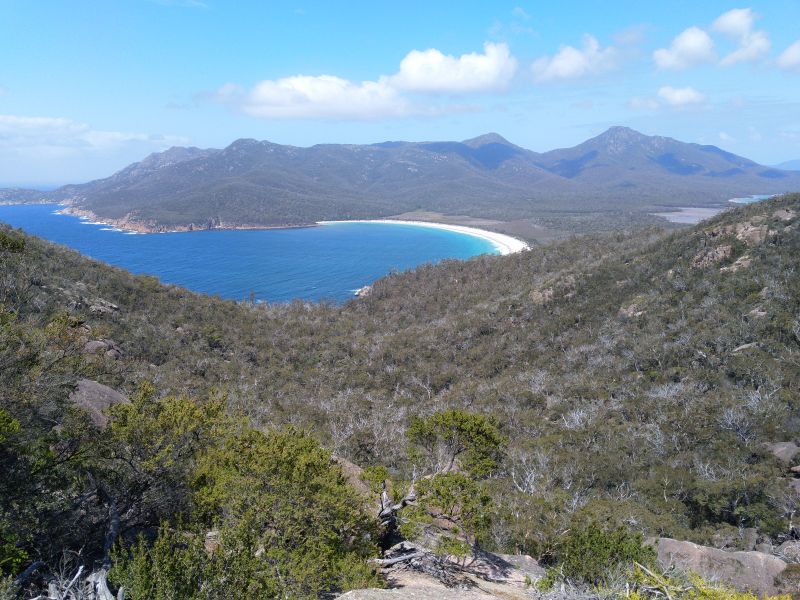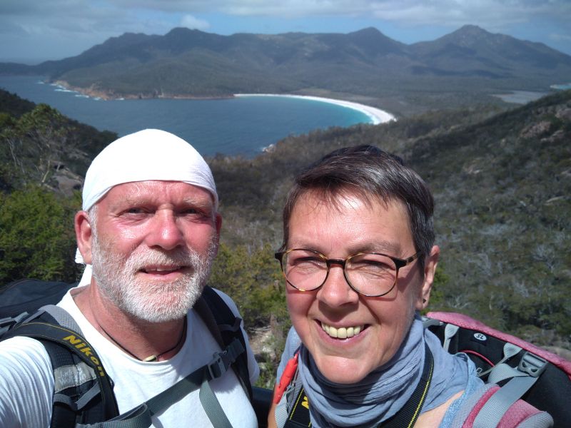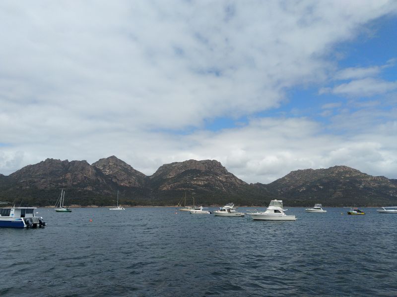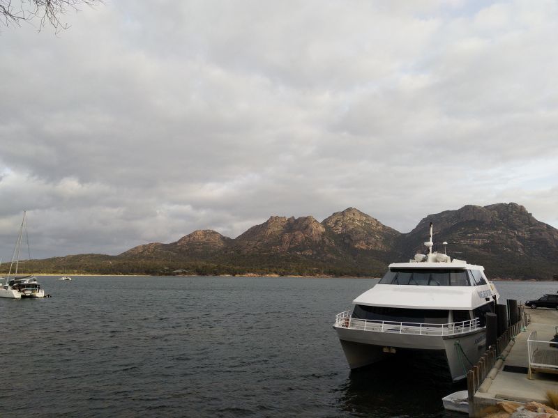 Dementsprechend groß ist natürlich unsere Enttäuschung als wir am Lookout auf die berühmte Wineglass Bay schauen. Statt Südsee heute eher Schottlandatmosphäre. Schade, aber so ist es eben.