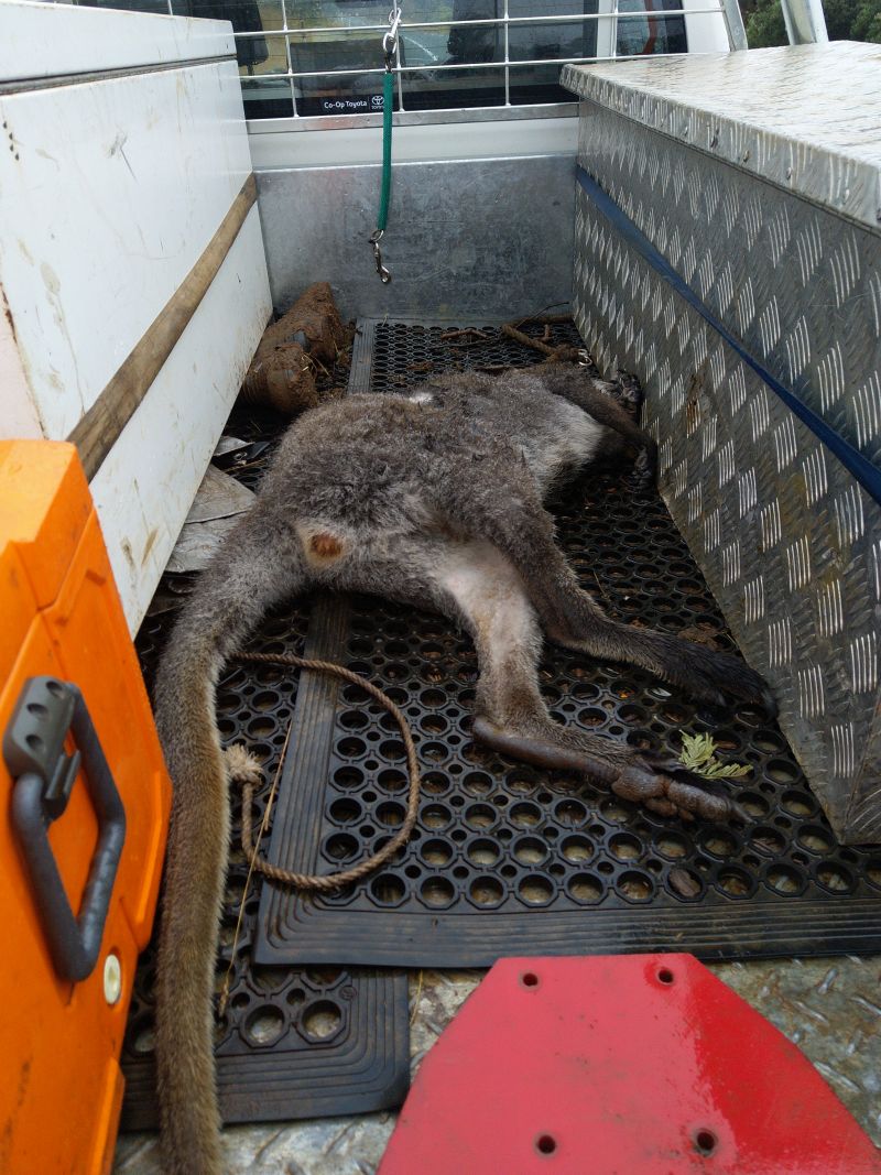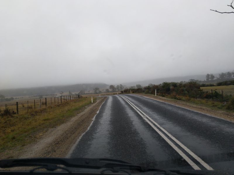Kurz vor Swansea springt uns ein grosses Känguru vors Auto. Da hat man keine Chance. Was tun? Das Tier liegt mitten auf der Straße. Wegziehen kann ich es nicht - mental. Ein Pickup kommt vorbei und ich halte ihn an. Ich frage den Typen, anders kann ich ihn nicht beschreiben, was man in solch einem Fall macht. Ich muss fünfmal nachfragen und verstehe ihn immer noch nicht. Er steigt aus, schnappt sich das Tier am Schwanz und schwingt es auf die Ladefläche. Wahrscheinlich gibt es abends Burger.