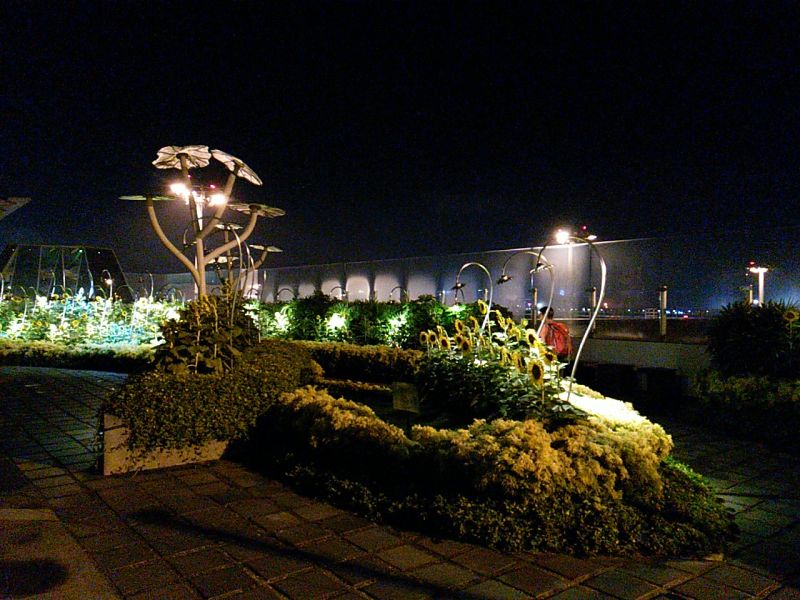 In Singapore haben wir nicht soo viel Zeit, zumal wir das Terminal wechseln müssen. Aber für den Sunflowergarden reicht es. Susi hatte uns den empfohlen? Er ist auf einer Terrasse im Freien mit Blick auf das Vorfeld. Ein besonderer Effekt tritt ein, wenn man die Tür vom klimatisierten Terminal nach drausen öffnet.