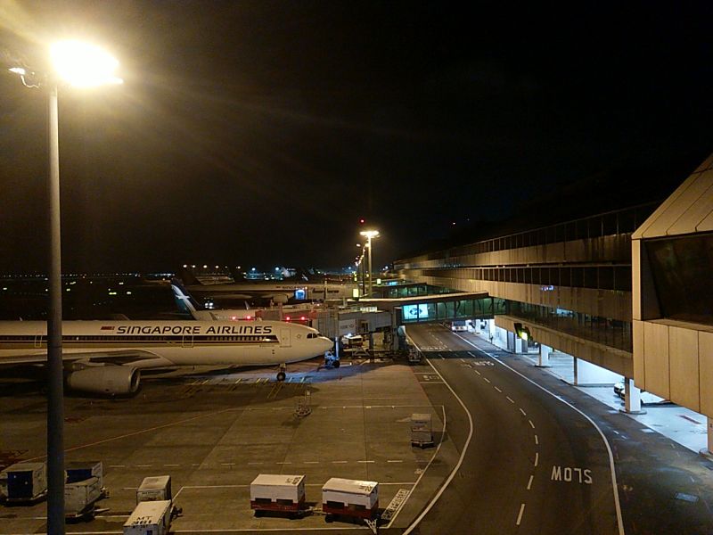 Nach 7 Stunden, verschiedenen Schlafversuchen und nicht so dollem Essen kommen wir in Singapore an. Die Tür öffnet sich und ein Schwall heisser feuchter Luft kommt rein. Leider wird unsere Neugierde nicht befriedigt wie die 2 rauskommen. Ich weiss dass ist gemein, aber was soll man denn sonst so lange in den Blechbüchsen machen. Ich bin der festen Überzeugung, dass Woody Allen all seine Ideen aus Überseeflügen hat. Ich mag seine Filme unheimlich gerne. Wenn mir jemand eine Freude zu einem Geburtstag machen möchte: die große Woody Allen Directorcut-Bonusbox, eine Kiste Rotwein, eine Palette Chips und etwas Zeit :-).