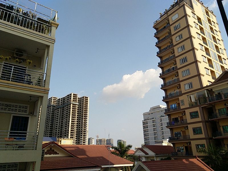 Während wir ins Hotel fahren erzählt uns Sina so dies und das über sein Land. Der Verkehr ist nicht sehr schnell, dafür chaotisch. Verkehrsregeln, wenn vorhanden, werden ignoriert. Welch ein Unterschied: Coles Bay hatte 474 Einwohner - Phnom Penh soll 3 000 000 haben. Gegen 10:30 sind wir im Double Leaf Boutique Hotel. Leider ist unser Zimmer noch nicht fertig. Wir hatten auf eine Dusche und einen little nap gehofft. Wir besprechen noch den morgigen Tag und dann lässt uns Sina alleine für heute.