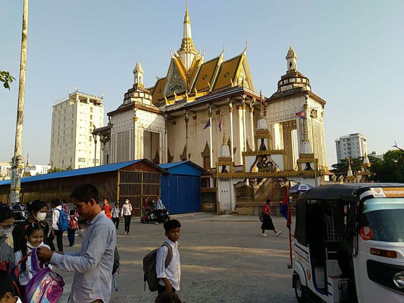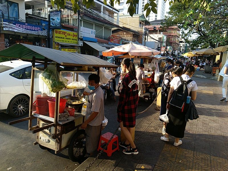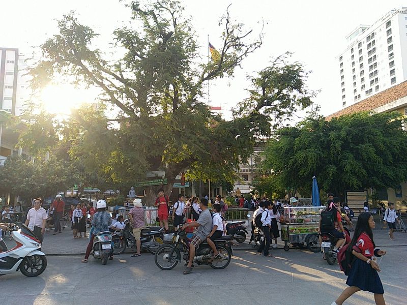 Das letzte Stück nach Phnom Penh ist ein Klacks und wir rutschen die knapp 2h auf einer Arschbacke ab. Zum Frühstück bekommen wir scharfe Nudeln mit Garnelen und Tintenfisch. Richtig lecker!