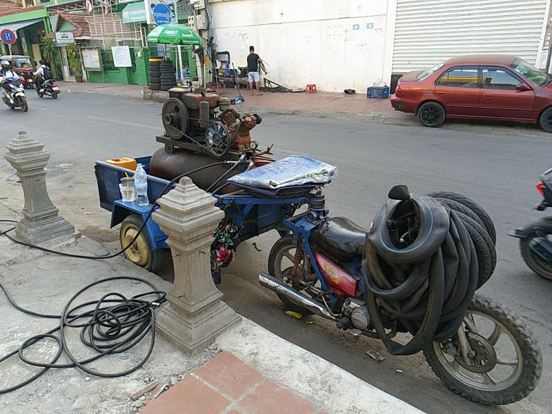 Es ist noch früh am Tag und wir erkunden noch ein wenig die direkte Umgebung. Nicht weit ist ein Kloster auf dem Stadtplan. Das entpuppt sich als ziemlich verfallen, aber ein Neues ist im Aufbau. Viel interessanter ist es den Leuten bei ihrer Arbeit zuzusehen. Wir laufen durch ein Viertel in dem sich alles ums Auto dreht. Von Werkstätten über Waschstrassen bis zum kleinen Einmannbetrieb mit Kompressor auf dem Anhänger zum Aufpumpen von Reifen. Überall gibt es kleine Küchen auf 1 bis 4 Rädern. Da meiste kann man erkennen, aber bei manchen Sachen würde ich schon gerne mal nachfragen. Allerdings sehen die Frauen hinter den Läden nicht so aus als würden sie enlisch sprechen. Ich trau mich noch nicht so recht.