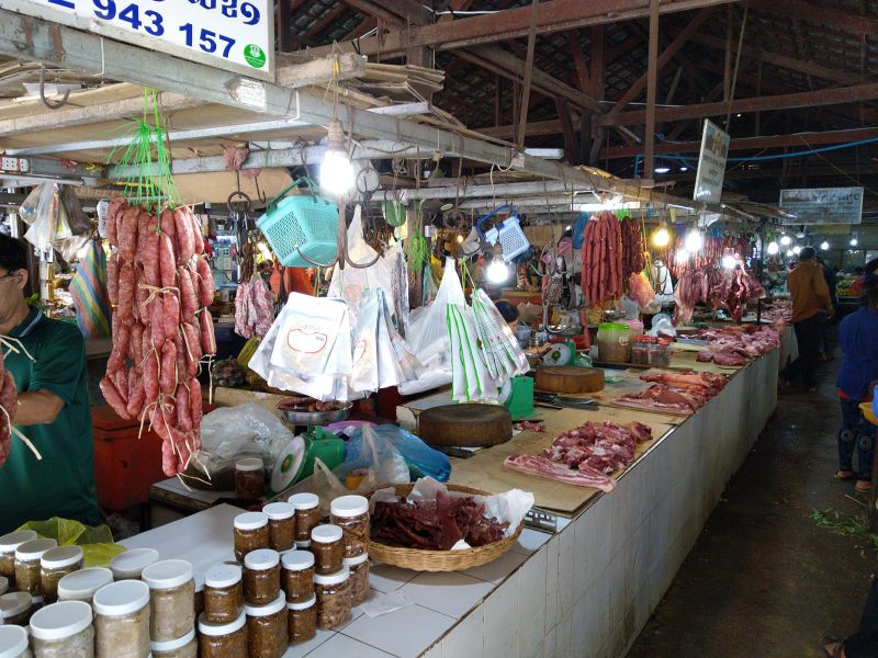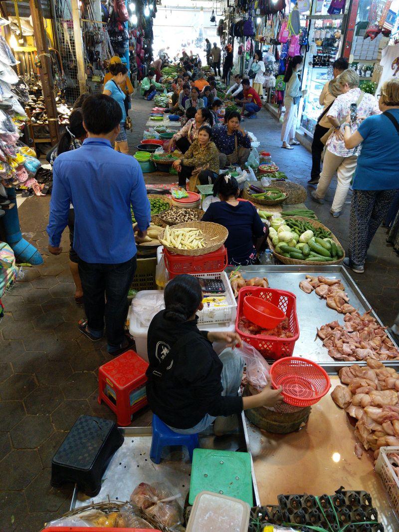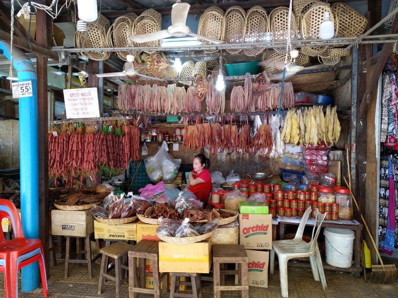 Wir stehen nur wenig später auf als sonst. Wir laufen los, zuerst in Richtung der königlichen Gärten. Leider ist davon ein großer Teil wegen Arbeien abgesperrt. Dann lassen wir uns treiben in Richtung der gestern Abend vollen und lauten Pub Street. Am Morgen ist hier noch nicht viel los und so können wir die umgebenen Gassen mit den vielen kleinen Geschäften in Ruhe erkunden. Fast in Ruhe, denn Thomas plagen Durchfälle - also muss es manchmal ziemlich schnell gehen ...