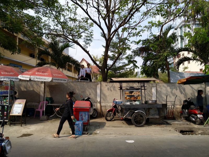 Was uns direkt auffällt ist, daß an Ampeln die Menschen tatsächlich anhalten wenn es rot ist. Der Verkehr ist wesentlich ruhiger und entspannter als in Phnom Penh. Wirkt schon mal sehr angenehm. Außerdem hat es kurz vor unserer Ankunft wohl geregnet und es ist lange nicht so heiß hier. Unser Hotel liegt recht zentral, das Zimmer ist wesentlich kleiner als die Vorhergehenden, aber das ist nicht wirklich ein Problem. Sogleich gehen wir vor die Tür und suchen uns eine Kneipe um ein gepflegtes Bier zu trinken. Keine 2 Minuten weiter werden wir fündig und gönnen uns ein Beer Lao. Ehrlich gesagt haben wir uns lange darauf gefreut. Das hat uns schon