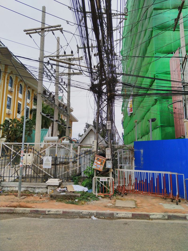 Es regnet nun etwas mehr und wir holen tatsächlich den Schirm raus. Ein paar Strassen weiter soll es eine Shopping Mall geben. Auf dem Platz war früher der Morning Market - bis die Chinesen kamen. Da die Verkehrsdichte und das -verhalten deutlich entspannter sind als in Kambodscha, macht es fast Spaß durch die Stadt zu laufen.