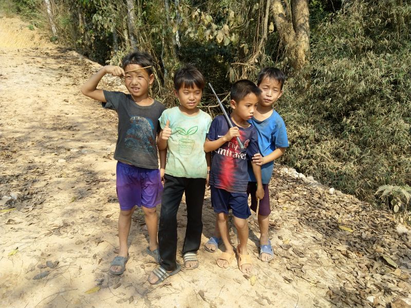 Da wir schon zu lange gesessen haben laufen wir gleich nochmals los. In der Nähe sind auf meiner Karte Höhlen verzeichnet; mehrere in Laufnähe. Auf der Strasse begegnen uns viele Buggies. Ist hier wohl gerngemachter Unsinn vor allem von Asiaten. An einer Weggabelung sitzt ein Laote und will je 10000Kip für den Zugang zur Höhle. Berechtigt oder nicht?? Die Höhle ist dann nicht so der Bringer. Naja. Hauptsache bewegt.