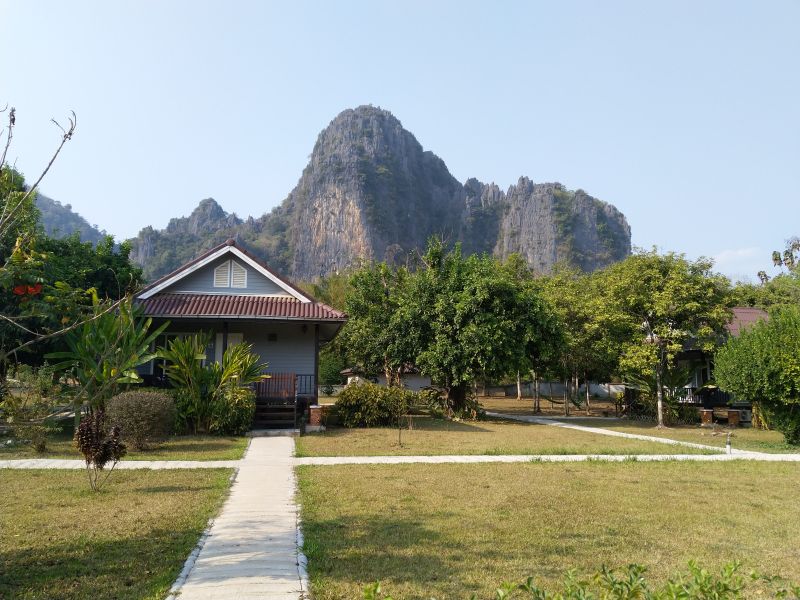 Die Bearlin Bungalows sind tatsächlich Bungalows mit Blick auf die Karstberge. Nicht schlecht.